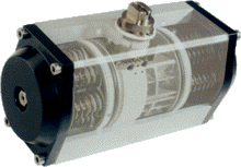 气动执行器的执行机构和调节机构是统一的整体,是以压缩气体作为能源,可分为单作用和双作用两种类型:执行器的开关动作都通过气源来驱动执行,叫做DOUBLE ACTING (双作用)。SPRING RETURN (单作用)的开关动作只有开动作是气源驱动,而关动作时弹簧复位。其执行机构有薄膜式、活塞式、拨叉式和齿轮齿条式。活塞式行程长,适用于要求有较大推力的场合;而薄膜式行程较小,只能直接带动阀杆。拨叉式气动执行器具有扭矩大、空间小、扭矩曲线更符合阀门的扭矩曲线等特点,但是不很美观;常用在大扭矩的阀门上。齿轮齿条式气动执行机构有结构简单,动作平稳可靠,并且安全防爆等优点,